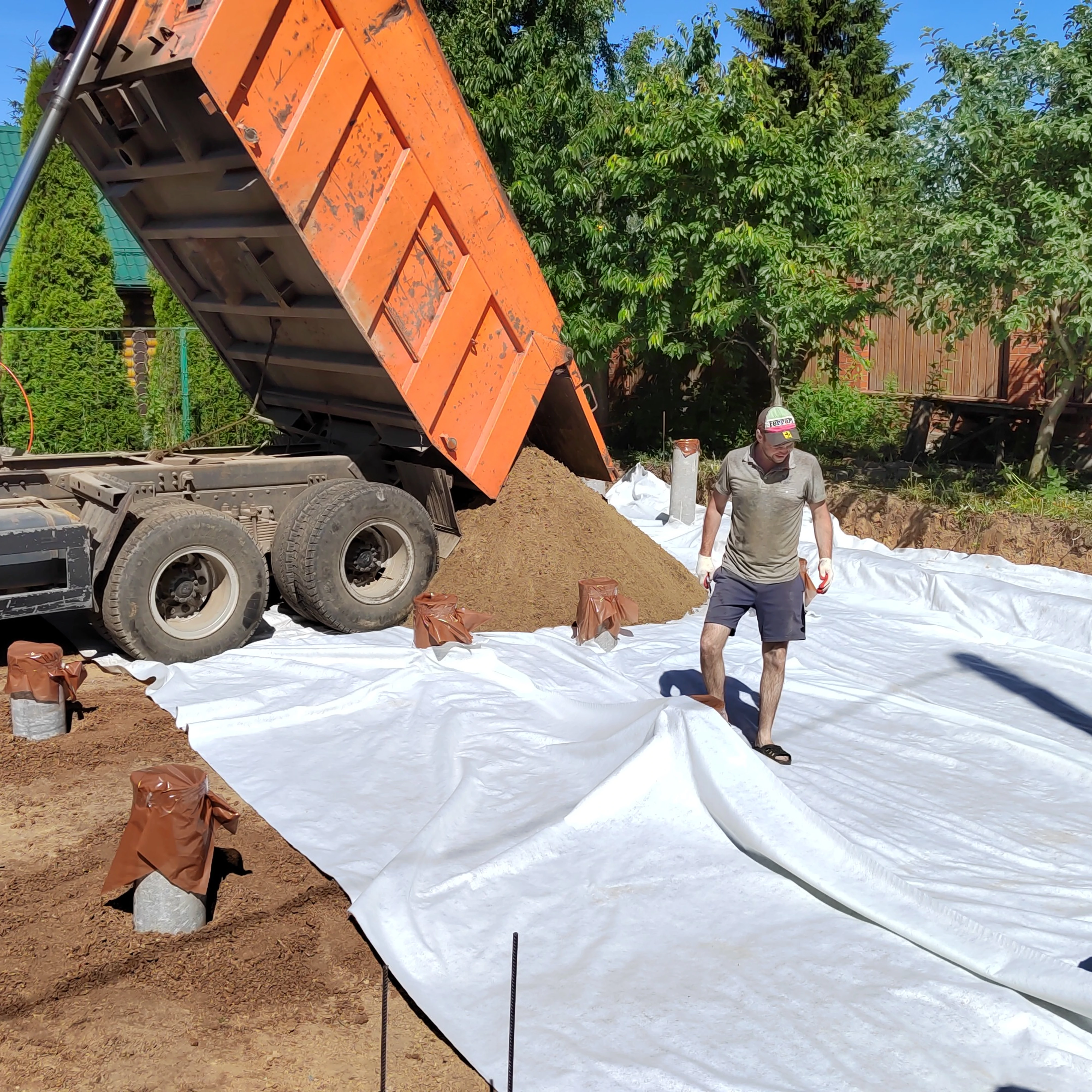 Для земляных и бетонных работ используем свою спецтехнику: экскаваторы, погрузчики, бетонные насосы, самосвалы. Это позволяет выходить на объект в нужный день и не зависеть от сторонних подрядчиков.